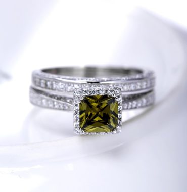Luxurious silver 925 twins rings inlaid with olive green zircon and side white special crystalsLuxurious silver 925 twins rings inlaid with olive green zircon and side white special crystals Sale!