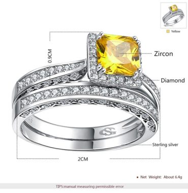 Luxurious silver 925 twins rings inlaid with champagne zircon and side white special crystalsLuxurious silver 925 twins rings inlaid with champagne zircon and side white special crystals Sale!