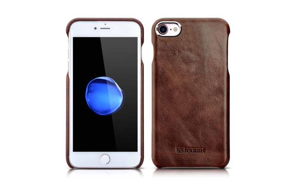 غطاء خلفي ايفون 7 من الجلد الطبيعي مع تصميم من المعدن حول الكاميرة مطلي بزيت الشمع من icarer
